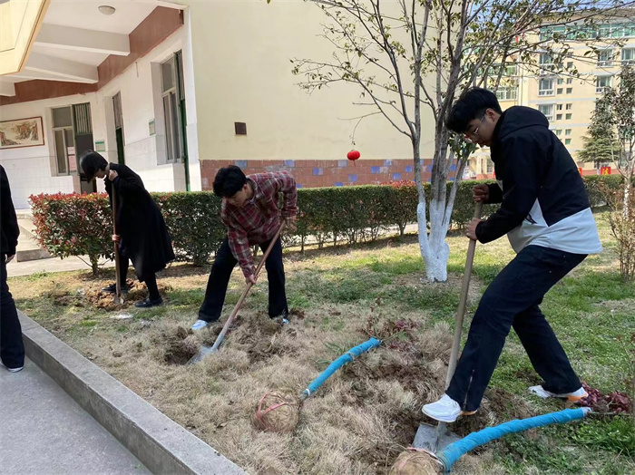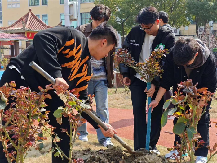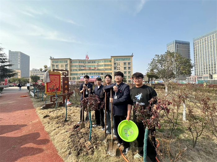 春風潤物,“植”得美好。植樹現(xiàn)場,各二級學院師生們分工協(xié)作,扶正苗木、揮锨鏟土、踏土固根、灌溉清水…以實際行動共同參與植樹護綠行動,信息工程學院黨員師生代表專門前往共建單位廬江縣冶父山鎮(zhèn)開展植樹活動,為綠美生態(tài)建設貢獻星青年力量。春風十里,不及一抹綠意。師生們用自己勤勞的雙手,揮鍬植樹,培育綠茵,曉一葉之理,種一樹美好。經(jīng)過大家的共同勞動,300多棵新栽的不老松、金桂、高桿月季等迎風挺立,煥發(fā)勃勃生機。