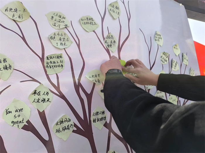 “樹”寫春意,銘志于樹。種下樹苗后,學生們以班級為單位,共同為校園的樹木掛上了特別的身份牌,并舉辦了“共許綠色心愿 攜手筑夢綠?!毙脑讣恼Z活動,借此寄情于綠,與樹木同成長,“樹”夢想,用實際行動為綠色校園建設貢獻一份力量。“今天很充實,也很有意義,一定會把口號落實到行動中,也希望在學校不斷成長,枝繁葉茂?!毙乔嗄陮W子們紛紛表示到。