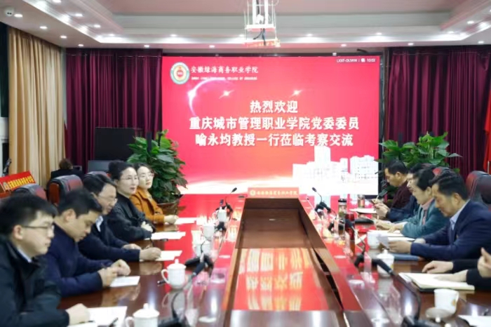為進(jìn)一步推進(jìn)馬克思主義學(xué)院專業(yè)建設(shè),促進(jìn)校際交流合作。3月15日,重慶城市管理職業(yè)學(xué)院黨委委員、黨委宣傳部長、馬克思主義學(xué)院黨總支書記喻永均一行來我院考察交流馬克思主義學(xué)院專業(yè)建設(shè)工作。安徽當(dāng)代社會(huì)主義核心價(jià)值體系研究中心主任、學(xué)校董事長、黨委副書記陳孝云,校黨委委員、文化行政總監(jiān)張以亭,黨委辦公室主任韋永久、黨委宣傳部長蘇勇,馬克思主義學(xué)院黨支部書記祝中俠、院長喻小紅及思政課教師代表參加交流活動(dòng)。