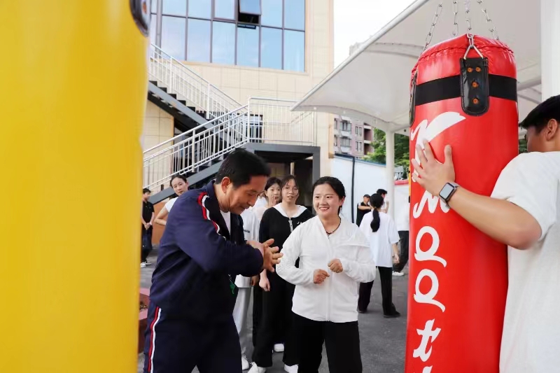 其三,陳老師的課堂教學(xué)充滿了樂趣。在課堂教學(xué)中,照本宣科是教學(xué)大忌,而善于營造良好的課堂氛圍,運用幽默風(fēng)趣的語言,將刻板、枯燥的理論轉(zhuǎn)化為一個個有趣的故事或場景,則會使課堂教學(xué)變得生動而鮮活,有趣而靈動。陳老師的體育武術(shù)課教學(xué),采用寓教于樂的傳授方式,語言表達(dá)、動作示范既生動有趣,又回味無窮,讓學(xué)生在輕松愉悅的氛圍中盡情地享受著體育教學(xué)帶來的樂趣。比如在講解武術(shù)散打的內(nèi)容時,既讓學(xué)生領(lǐng)會中華武術(shù)的精髓和發(fā)展脈絡(luò),又讓學(xué)生了解武術(shù)散打的實用功能,特別是針對現(xiàn)實生活中應(yīng)對校園或街頭霸凌侵害的“三步曲”,即先拳打,后腳踢,拳打腳踢無效后即是沖刺,沖刺就是逃命。這種對“沖刺”的妙解,令所有聽課者在歡聲笑語中頓然領(lǐng)悟,豁然而解,無不拍手叫絕。