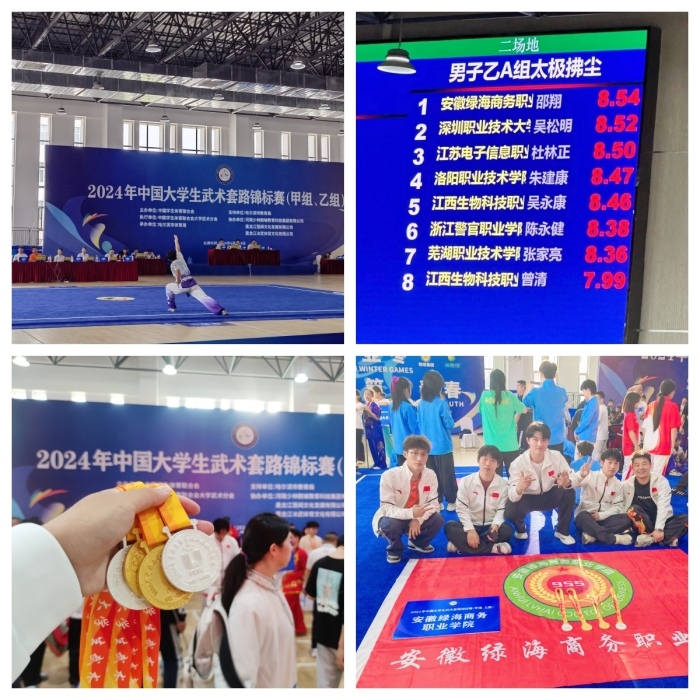 2金2銀 安徽綠海商務(wù)職業(yè)學(xué)院武術(shù)隊在2024年中國大學(xué)生武術(shù)套路錦標(biāo)賽中勇創(chuàng)佳績