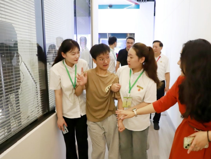 圖為程雅琴在志愿者的幫助下參觀星青年科創(chuàng)館