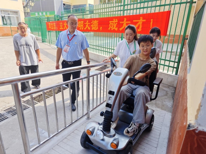 圖為程雅琴通過無障礙改造后的愛心通道前往宿舍