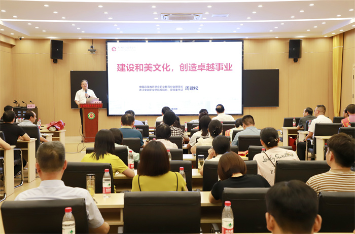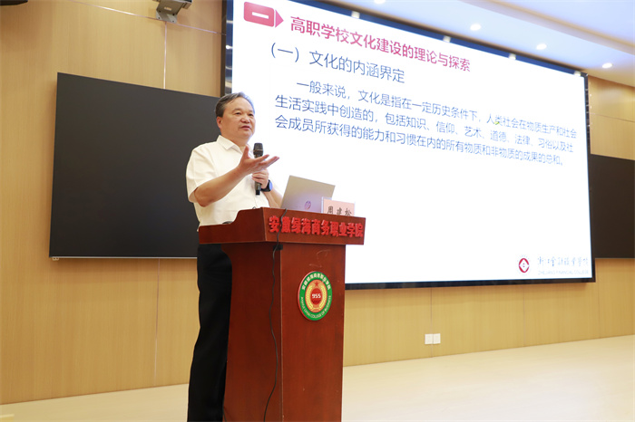 中國高等教育學(xué)會(huì)職業(yè)技術(shù)教育分會(huì)會(huì)長、知名職教專家周建松教授在綠海作“建設(shè)和美文化,創(chuàng)造卓越事業(yè)”專題報(bào)告