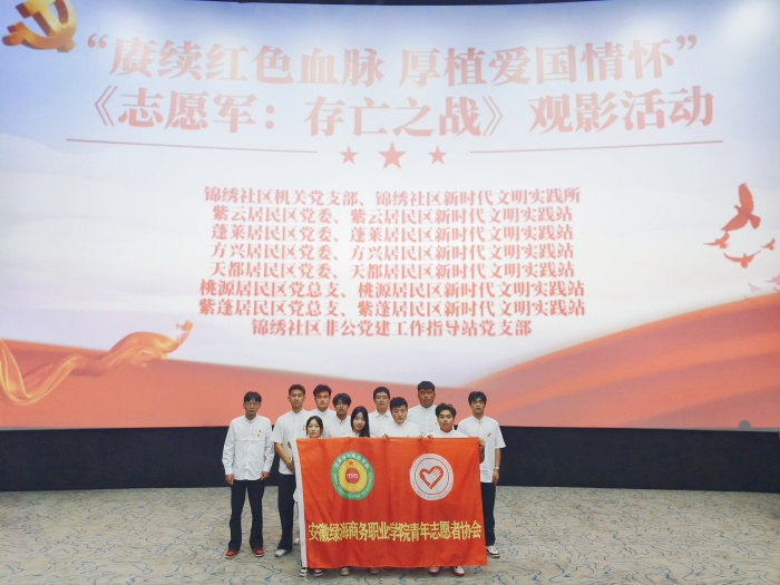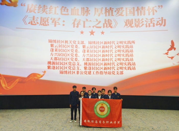 2024 年 10 月 12 日,為弘揚(yáng)愛(ài)國(guó)主義精神,傳承紅色基因,安徽綠海商務(wù)職業(yè)學(xué)院團(tuán)委組織40余名師生參加由錦繡社區(qū)機(jī)關(guān)黨支部等多家單位聯(lián)合舉辦的以“賡續(xù)紅色血脈,厚植愛(ài)國(guó)情懷”為主題的《志愿軍:存亡之戰(zhàn)》觀影活動(dòng)。