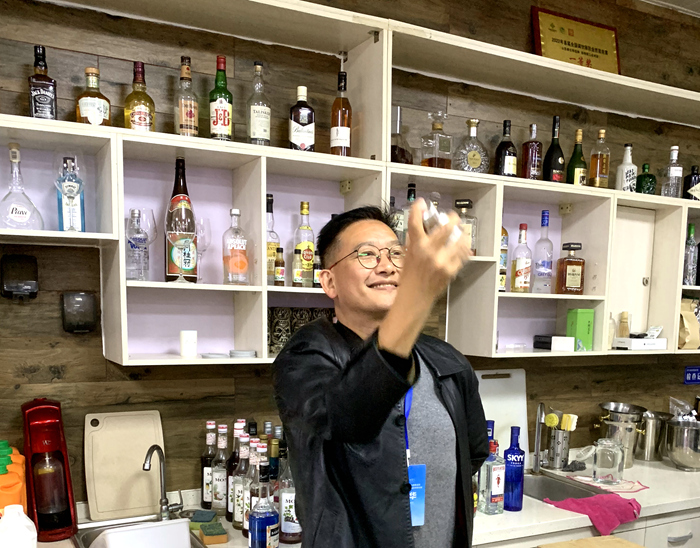 在參觀山東城市服務(wù)職業(yè)學(xué)院產(chǎn)教融合基地時(shí),應(yīng)對(duì)方邀請(qǐng),經(jīng)貿(mào)旅游學(xué)院副院長(zhǎng)、國(guó)家級(jí)調(diào)酒師吳春華博士現(xiàn)場(chǎng)表演了調(diào)酒藝術(shù),專業(yè)技巧贏得了現(xiàn)場(chǎng)師生熱烈掌聲。(阮永久 復(fù)審:蘇勇、姜維長(zhǎng) 審核:郁宗菊 終審:許信旺)