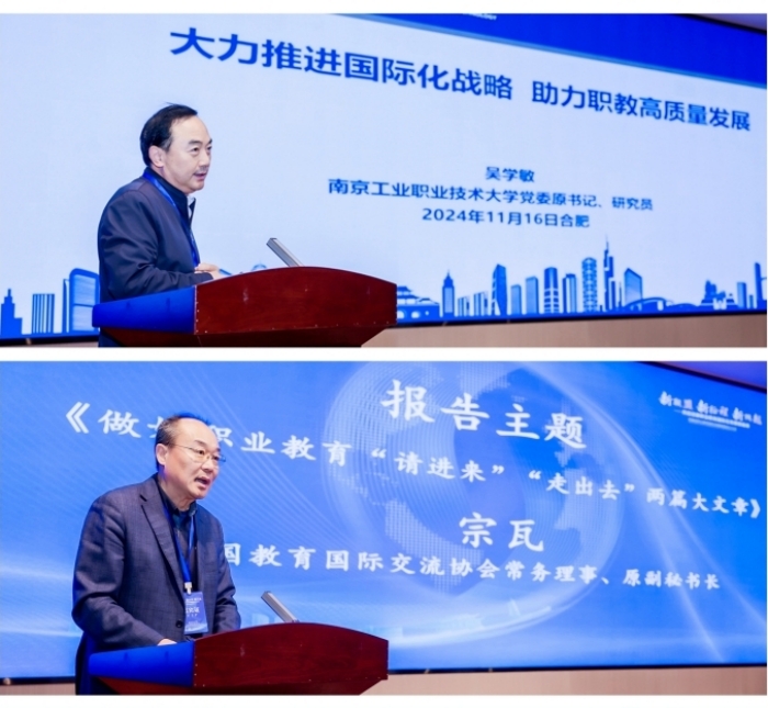 在活動主旨報告環(huán)節(jié),南京工業(yè)職業(yè)技術(shù)大學(xué)原黨委書記吳學(xué)敏,中國教育國際交流協(xié)會常務(wù)理事、原副秘書長宗瓦,安徽綠海商務(wù)職業(yè)學(xué)院董事長、黨委副書記陳孝云分別以《大力推進(jìn)國際化戰(zhàn)略,助力職教高質(zhì)量發(fā)展》《做好職業(yè)教育“請進(jìn)來”“走出去”兩篇大文章》《聚焦東盟,辦強吉隆坡科大,打造安徽教育出海的共享品牌》為題作主旨分享。