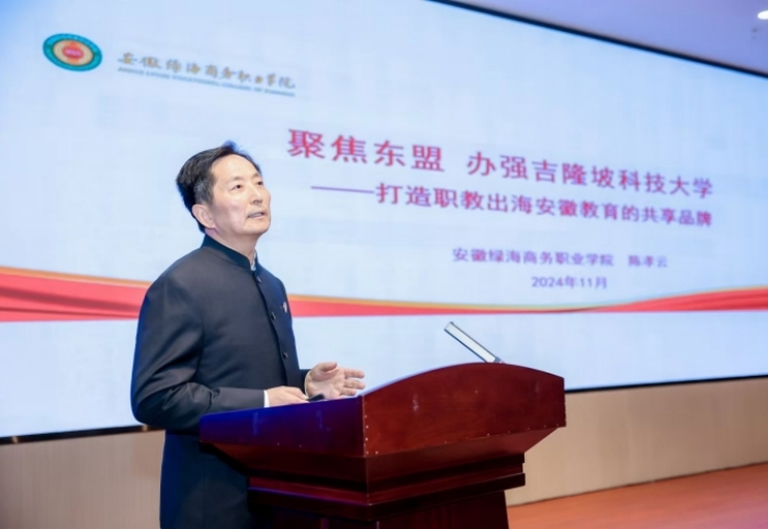 陳孝云董事長從黨建鑄魂、雙高引領(lǐng)、出海添彩、共享未來四個方面詳細(xì)闡述了安徽綠海商務(wù)職業(yè)學(xué)院聚焦高質(zhì)量黨建引領(lǐng)“雙高”建設(shè),緊緊圍繞“一體兩翼五重點”開展標(biāo)志性成果培育;堅持開放辦學(xué)理念,積極響應(yīng)國家“一帶一路”倡議及人類命運共同體的構(gòu)建,致力于將優(yōu)質(zhì)的教育資源和先進(jìn)的教育理念帶到國際舞臺,特別是聚焦東盟地區(qū),以吉隆坡科技大學(xué)的建設(shè)為橋梁,秉承合作多贏、服務(wù)地方、產(chǎn)教融合、東盟爭先辦學(xué)宗旨,共建合作辦學(xué)國際項目,共搭國際交流合作平臺,共研職業(yè)教育國際標(biāo)準(zhǔn),共享“一帶一路”辦學(xué)成果,打造國際職業(yè)教育合作新范式。加強與政、行、企、校的合作,創(chuàng)建安徽在東盟的一個國際化、產(chǎn)教融合、文化交融、民心相通的國際教育共享平臺,以便更好促進(jìn)安徽與東盟之間在教育、文化、科技、商貿(mào)等領(lǐng)域的合作與發(fā)展,為服務(wù)“一帶一路”國家戰(zhàn)略和大國外交作出新的貢獻(xiàn)。