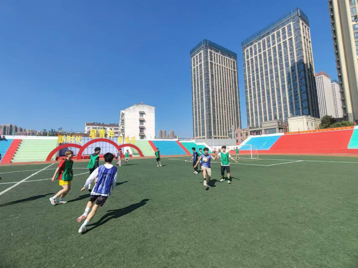 本次比賽在學(xué)校足球場舉行,參賽隊伍分別來自學(xué)院內(nèi)各個系部,匯聚了全校11支隊伍(包含教職工隊),他們同臺競技共同書寫了綠茵場上的精彩篇章。比賽期間,教職工與學(xué)生足球運動員們競相展示高超球技和良好的體育道德風(fēng)尚,展現(xiàn)出了友誼第一比賽第二的體育精神。學(xué)生代表隊他們揮灑汗水、奮力拼搏,充分展現(xiàn)了新時代大學(xué)生青春洋溢、團結(jié)協(xié)作的精神風(fēng)貌和無限活力。
