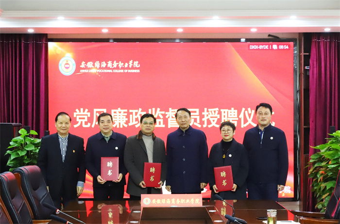 為進一步加強學校黨風廉政建設,提升紀檢監(jiān)察工作質效,11月25日,我校在路演廳舉行“黨風廉政建設監(jiān)督員授聘儀式”。督導專員、黨委書記孫永現(xiàn)場為三位黨風廉政監(jiān)督員韓雙喜、祝中俠、汪芳頒發(fā)聘書,黨委副書記、紀委書記劉興杰主持儀式,黨委委員、工會主席、紀委副書記周宗斌及校紀委全體成員出席活動。