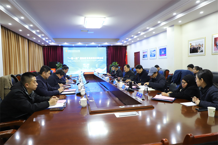 12月30日,我?!耙粠б宦贰眹?guó)際教育高質(zhì)量發(fā)展論壇在科技樓路演廳舉行。浙江商業(yè)職業(yè)學(xué)院校長(zhǎng)張寶忠,山東城市職業(yè)學(xué)院黨委委員、副校長(zhǎng)趙長(zhǎng)珂,山東城市職業(yè)學(xué)院國(guó)際交流學(xué)院副院長(zhǎng)邵文,武漢職業(yè)技術(shù)學(xué)院原黨委書(shū)記、湖北職業(yè)教育研究院院長(zhǎng)李洪渠,武漢職業(yè)技術(shù)學(xué)院外事處處長(zhǎng)張子一,武漢體育學(xué)院國(guó)際交流處處長(zhǎng)杜更,內(nèi)蒙古機(jī)電學(xué)院原黨委書(shū)記李永義等7名知名職業(yè)教育專家應(yīng)邀參會(huì),聚焦“一帶一路”國(guó)際教育高質(zhì)量發(fā)展,為我校職教出海及國(guó)際化辦學(xué)把脈問(wèn)診、出謀劃策。