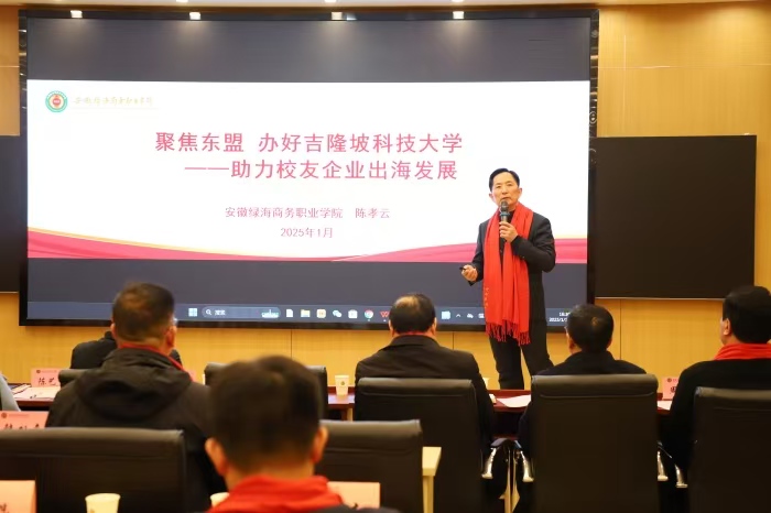 副校長(zhǎng)吳玉就學(xué)校積極響應(yīng)“一帶一路”倡議,開(kāi)展國(guó)際教育交流工作所取得的成果作了介紹。他指出,國(guó)際化辦學(xué)一直是綠海的發(fā)展戰(zhàn)略,目前學(xué)校已為乍得、越南等國(guó)家開(kāi)發(fā)了職業(yè)標(biāo)準(zhǔn),是“中阿高校10+10合作計(jì)劃”中方成員高校,世界技能發(fā)展聯(lián)盟會(huì)員單位,中國(guó)—中東歐國(guó)家職業(yè)院校產(chǎn)教聯(lián)盟成員單位,入選共建“一帶一路”職業(yè)教育成果優(yōu)秀案例院校。吳玉就星青年國(guó)際集團(tuán)并購(gòu)馬來(lái)西亞吉隆坡建設(shè)大學(xué),并將其更名為吉隆坡科技大學(xué)的喜訊向校友們作了通報(bào),他指出吉隆坡科技大學(xué)不僅是綠海教育出海的窗口,更是為廣大校友服務(wù)的新基地,母校將依托國(guó)際教育合作平臺(tái),集聚更多海外資源,賦能廣大校友的事業(yè)發(fā)展。