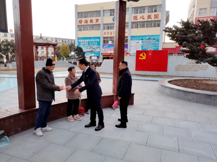 1月28日下午,在農(nóng)歷乙巳蛇年春節(jié)即將到來之際,學(xué)校董事長(zhǎng)、黨委副書記、星青年文化研究院院長(zhǎng)、安徽數(shù)字創(chuàng)意職業(yè)教育集團(tuán)理事長(zhǎng)陳孝云教授,董事會(huì)董事、總務(wù)處處長(zhǎng)孫圣祥在學(xué)校大門值班崗和黨建文化廣場(chǎng)看望慰問學(xué)校安保、保潔等后勤保障一線值班值守人員,為他們送上深深祝福和慰問金。陳孝云教授代表學(xué)校董事會(huì)、黨委、行政和全體師生向他們表示親切的慰問,詳細(xì)詢問了大家的生活、住宿及過年安排情況,對(duì)大家在節(jié)假日期間的辛勤付出和作出的貢獻(xiàn)表示衷心感謝,并向他們及其家人致以新年最良好的祝愿和美好的祝福。
