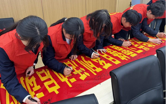 儀式現(xiàn)場,全體志愿者莊嚴(yán)宣誓,表達(dá)傳承雷鋒精神、投身志愿服務(wù)的決心。宣誓后,師生在“弘揚(yáng)雷鋒精神,爭做時代星青年”橫幅上簽字,許下傳承承諾。