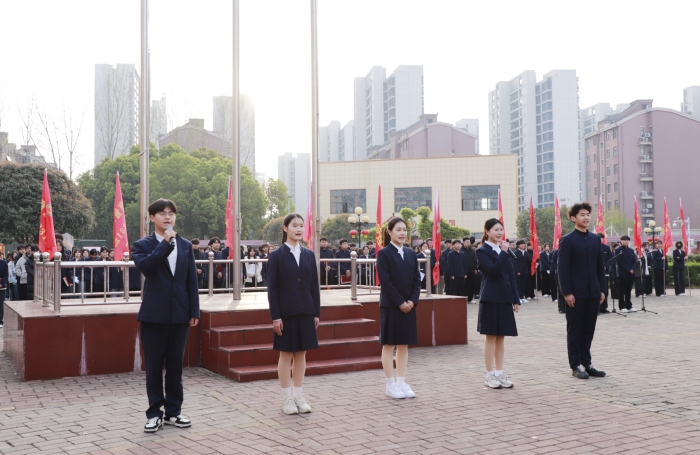 晨光初綻,國旗護衛(wèi)隊邁著鏗鏘步伐護送五星紅旗入場。在激昂的國歌聲中,全體師生肅穆而立,面向國旗行注目禮。激昂的旋律、熾熱的目光,凝聚著師生對祖國的深切熱愛與崇高敬意。