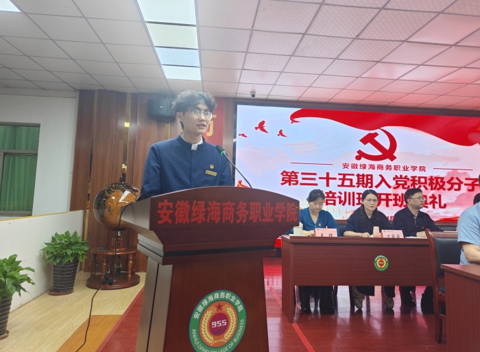 信息工程學(xué)院計(jì)算機(jī)網(wǎng)絡(luò)技術(shù)238班蘇禮賀同學(xué)代表學(xué)員發(fā)言表態(tài),表達(dá)了對(duì)中國(guó)共產(chǎn)黨的熱愛(ài)和崇敬之情,表明積極要求進(jìn)步、渴望加入黨組織的強(qiáng)烈愿望和決心。