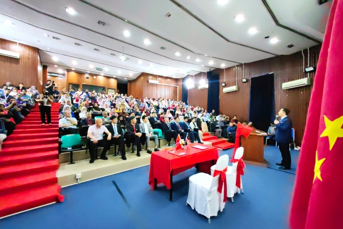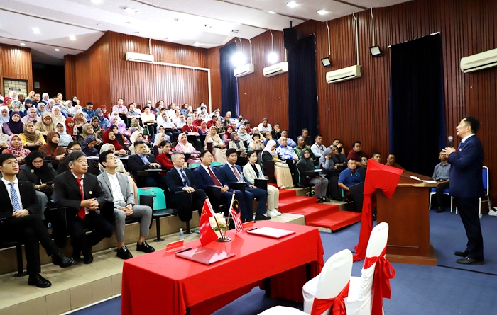 “在這個特別的時刻,我想用‘感恩’、‘銘記’、‘開創(chuàng)’三個關(guān)鍵詞來表達(dá)我的內(nèi)心感受和美好愿望?!标愋⒃票硎?,時值中馬建交50周年之際,在“一帶一路”倡議的引領(lǐng)下,受陳嘉庚精神的感召,我們從中國安徽來到了美麗的馬來西亞吉隆坡,來到了生機(jī)煥發(fā)的吉隆坡建設(shè)大學(xué)。今天,這場隆重的交接儀式具有里程碑式的意義,將載入吉隆坡建設(shè)大學(xué)的發(fā)展史冊。