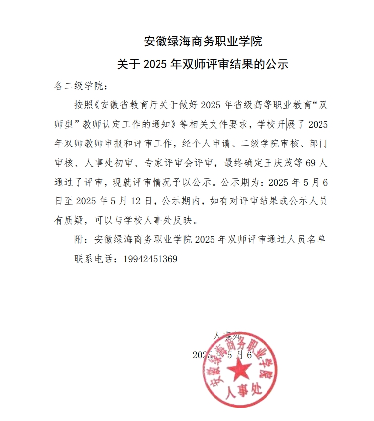 附件:安徽綠海商務(wù)職業(yè)學(xué)院2025年“雙師型”教師認(rèn)定通過(guò)人員名單