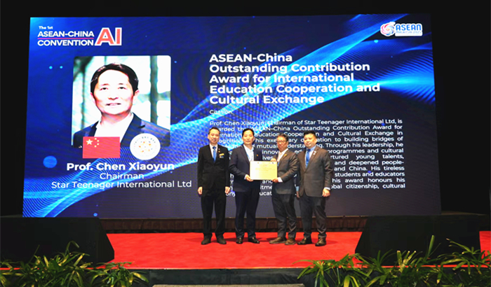 大會(huì)期間,吉科大董事局主席、星青年國際集團(tuán)有限公司董事長陳孝云教授憑借其在推動(dòng)?xùn)|盟與中國教育合作、促進(jìn)文明互鑒方面的卓越貢獻(xiàn)與不懈努力,榮膺組委會(huì)頒發(fā)的“東盟-中國國際教育合作與文化交流杰出貢獻(xiàn)獎(jiǎng)”。頒獎(jiǎng)詞指出,陳孝云教授始終秉持著開拓創(chuàng)新的精神,積極投身于創(chuàng)新性教育項(xiàng)目和文化交流計(jì)劃的實(shí)施,悉心培育青年才俊,推進(jìn)區(qū)域人工智能領(lǐng)域交流合作,不斷深化東盟與中國之間的人文紐帶。他的辛勤付出為學(xué)生和教育工作者開辟了全新的學(xué)習(xí)、交流與共同成長的廣闊天地。