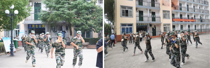 13:50,演練總指揮發(fā)出“演練開(kāi)始”的指令,宿舍樓出現(xiàn)橙色模擬火情濃煙,警報(bào)聲隨即響起。保衛(wèi)處立即組織人員趕赴樓層進(jìn)行模擬滅火演練,醫(yī)務(wù)救護(hù)組人員在一旁待命,隨時(shí)準(zhǔn)備急救。各樓學(xué)生在輔導(dǎo)員、宿舍管理人員、軍訓(xùn)教官的引導(dǎo)下,按照預(yù)案要求,用濕毛巾掩住口鼻、低姿彎腰沿安全通道快速有序撤離,到達(dá)指定疏散集結(jié)點(diǎn)。演練現(xiàn)場(chǎng)組織有序,所有人員均安全撤離。