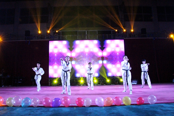 華燈初上,歡聚一堂。晚會伊始,學(xué)院副董事長、副院長陳孝江致辭,向2016屆新生表示熱烈歡迎。隨著音樂響起,一場絢麗多彩的燈光秀為大會拉開了帷幕。接下來,舞蹈、歌曲、小品、武術(shù)表演一一上場,由學(xué)姐們跳的《好運來》燃起了同學(xué)們的激情,小品《蝸居》給大家?guī)砹藲g樂,街舞團學(xué)長學(xué)姐們的賣力表演掀起了會場的高潮,歌曲《最長的電影》使得人們內(nèi)心變得平靜,在一段走秀后,由大一新生表演的舞蹈《紅色娘子軍》讓同學(xué)們對紅軍先輩們充滿敬意,歌曲《我最閃亮》讓大家對自己充滿自信,小品《我們的傳統(tǒng)文化》,激起了人們對傳統(tǒng)文化的興趣,學(xué)長學(xué)姐們表演的武術(shù),讓我們更深刻地感受到了傳統(tǒng)文化的歷史悠久,最后,隨著《國慶頌歌》的朗誦,本次晚會就此畫上圓滿的句號。