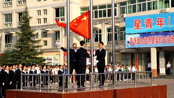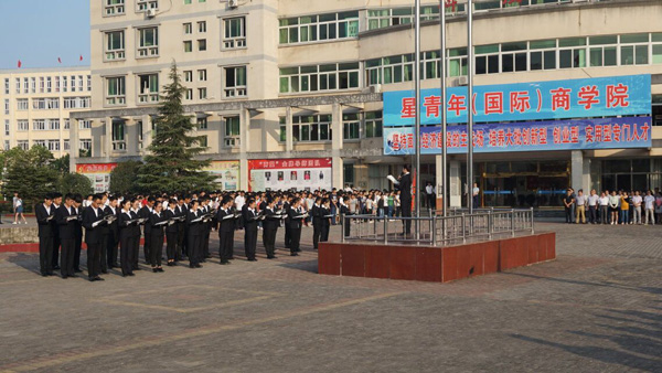 安徽綠海商務職業(yè)學院舉行新學期首次升旗儀式