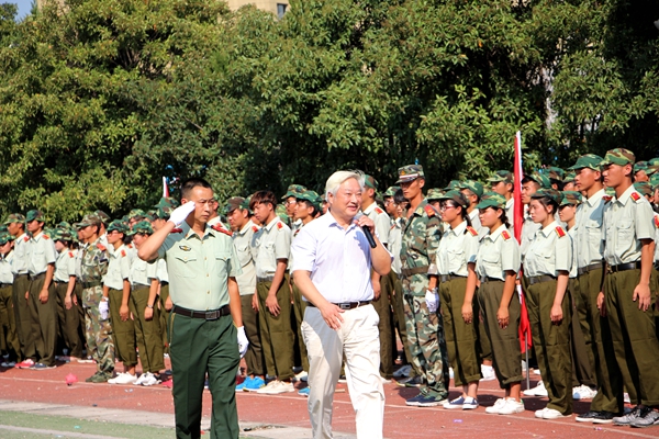 學(xué)院院長許崇正教授在開學(xué)典禮上發(fā)表熱情洋溢的講話。他首先代表學(xué)院向向承訓(xùn)部隊官兵表示謝意,向即將開啟嶄新大學(xué)生活的全體新同學(xué)表示熱烈的歡迎和親切的問候。他指出,軍訓(xùn)是強化大學(xué)生愛國精神、國防意識,培養(yǎng)建設(shè)棟梁之材的重要課堂。軍訓(xùn)期間,同學(xué)們嚴(yán)格要求,嚴(yán)格訓(xùn)練,明白了嚴(yán)謹(jǐn),懂得了堅持,領(lǐng)會了協(xié)作,展示了綠海學(xué)子素質(zhì)文明、紀(jì)律嚴(yán)明、團結(jié)協(xié)作的精神風(fēng)貌。許崇正就學(xué)院的辦學(xué)歷程和基本情況向全體大一新生作了分享并提出了幾點希望和要求:鞏固軍訓(xùn)成果,繼承和發(fā)揚部隊的優(yōu)良傳統(tǒng)和作風(fēng);盡快適應(yīng)大學(xué)生活,實現(xiàn)了從中學(xué)到大學(xué)的跨越,明確目標(biāo)和方向,規(guī)劃人生,迅速融入到綠海這個大家庭中去;勤于修身,學(xué)會做人,學(xué)做事,切實踐行社會主義核心價值觀,學(xué)習(xí)中華優(yōu)秀傳統(tǒng)文化,砥礪德行,追求至善,成為有益于、社會、人民,有所貢獻的合格人才;珍惜大學(xué)學(xué)習(xí)生活,在學(xué)習(xí)知識的同時,更要注重提高技能,提高自己的動手能力和實踐能力,爭取在以后的發(fā)展路上邁出堅實的一步。