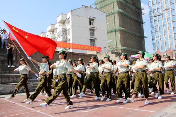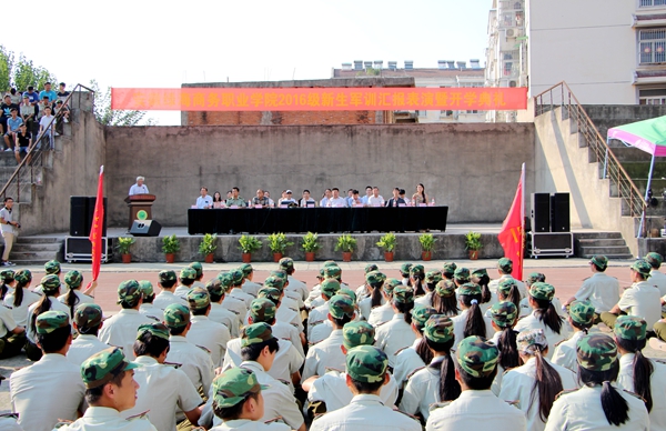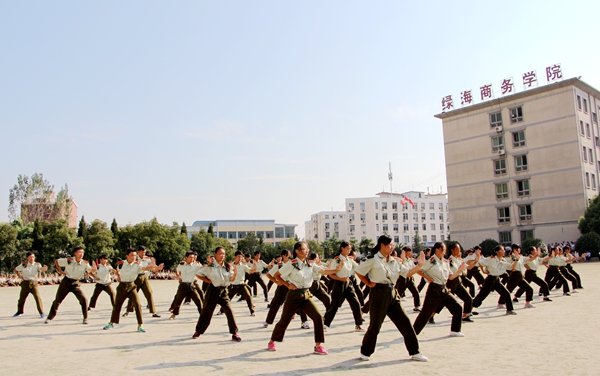 安徽綠海商務(wù)職業(yè)學(xué)院舉行2016級新生軍訓(xùn)匯演暨開學(xué)典禮