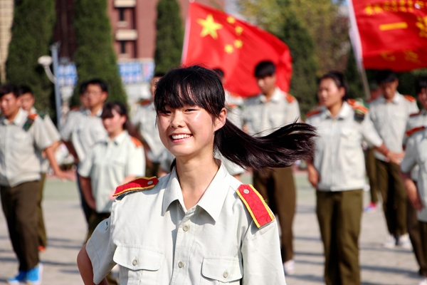 在分列式檢閱中,同學(xué)們精神飽滿、氣勢如虹,各個方陣邁著整齊的步伐昂首闊步地走過主席臺,接受領(lǐng)導(dǎo)檢閱。同學(xué)們陣容嚴(yán)整威武,鏗鏘有力的口號響徹綠海校園,贏得領(lǐng)導(dǎo)和嘉賓們的陣陣掌聲。隨后,進行了隊列、擒敵拳、集體舞《向前沖》、《浪漫櫻花》等精彩的軍事訓(xùn)練和文藝匯報演出。