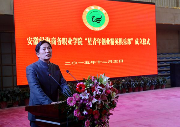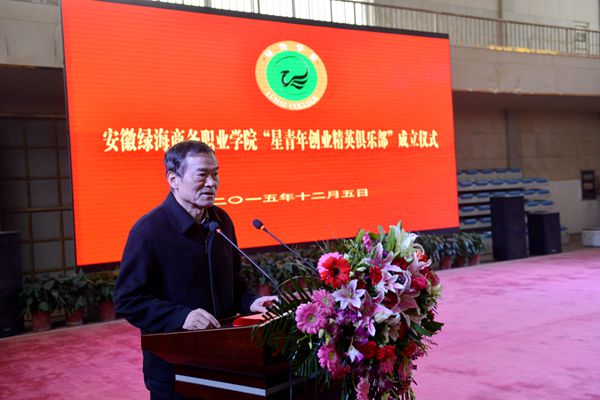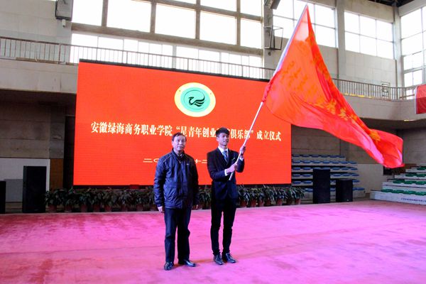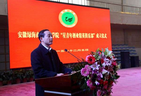 安徽綠海商務職業(yè)學院督導專員、黨委第一書記江傳瑞宣布“星青年創(chuàng)業(yè)精英俱樂部”正式成立并授旗。