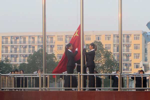 安徽綠海商務(wù)職業(yè)學(xué)院周一升國(guó)旗成常態(tài)化