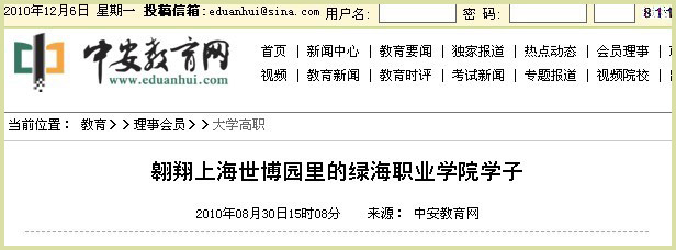 中安教育網(wǎng) 翱翔上海世博園里的綠海職業(yè)學(xué)院學(xué)子