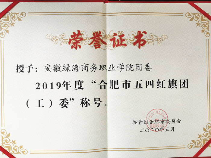 安徽綠海商務(wù)職業(yè)學(xué)院團(tuán)委獲2019年度“合肥市五四紅旗團(tuán)(工)委”稱號(hào)