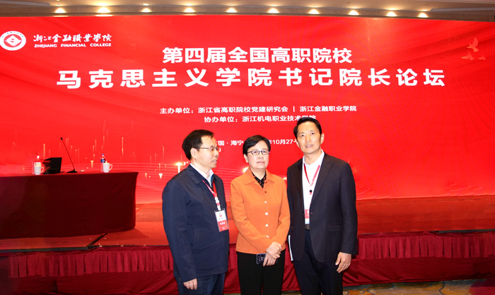 為深入貫徹落實學校思想政治理論課教師座談會、全國教育大會、全國高校思想政治工作會議精神,進一步推進新時代高職院校思想政治理論課教學改革和馬克思主義學院建設,10月27日至29日,由浙江省高職院校黨建研究會、浙江金融職業(yè)學院主辦的第四屆全國高職院校馬克思主義學院書記院長論壇在浙江海寧召開。
