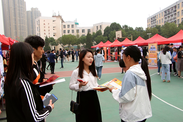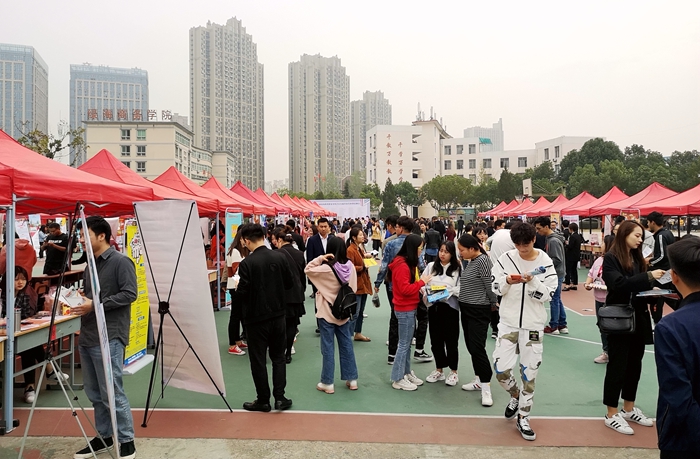 10月25日上午,安徽綠海商務(wù)職業(yè)學(xué)院校園內(nèi)人頭攢動,籃球場上一排排火紅鮮艷的帳篷整齊排列,到處洋溢著熱烈喜慶的氛圍,學(xué)院2020屆畢業(yè)生大型雙向選擇洽談會在此隆重舉行。