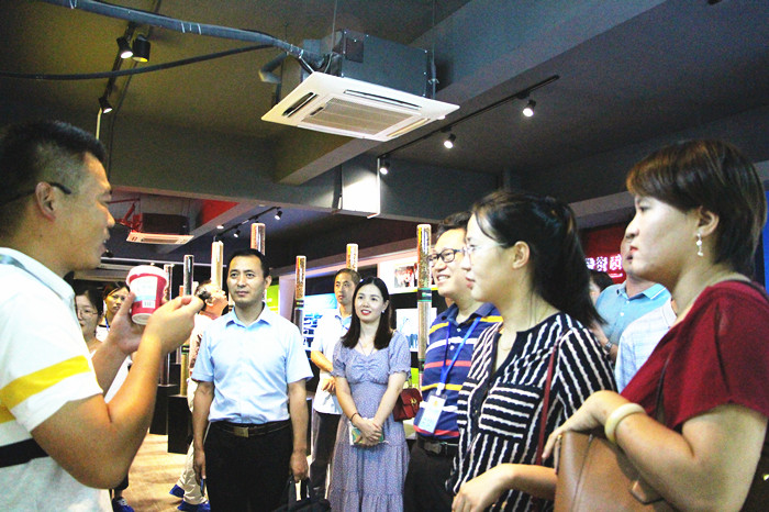 走進(jìn)青松食品公司,在企業(yè)講解員的引導(dǎo)下,老師們首先來到總監(jiān)控室,從一整面墻的監(jiān)控視頻看到了每個(gè)車間整潔、現(xiàn)代化的工作場景;踏入青松文化館,老師們了解了青松的發(fā)展歷程和食品文化,對栩栩如生的面塑和3D打印技術(shù)制作的食品模具好奇不已、贊不絕口;黨群文化館展示了增強(qiáng)企業(yè)凝聚力的經(jīng)驗(yàn)和做法,彰顯了企業(yè)的初心與擔(dān)當(dāng)。隨后,一行人又來到了青松科普研學(xué)基地,參觀了面點(diǎn)DIY教室和青松食品科普館。在參觀學(xué)習(xí)過程中,教師們滿懷熱情,邊看邊聽邊學(xué)。陳孝云等院領(lǐng)導(dǎo)不時(shí)與工作人員進(jìn)行交流探討,挖掘建立校企合作契合點(diǎn)。