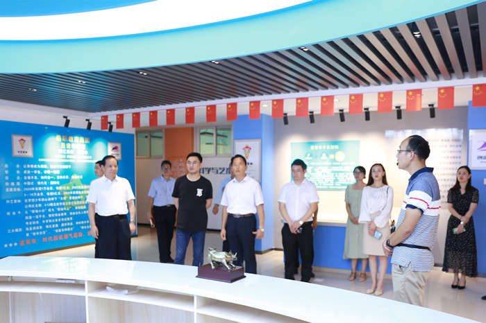姚曉輝一行先后深入航空高鐵乘務(wù)學(xué)院、星青年文化廣場、星青年人才培養(yǎng)模式展示廳、產(chǎn)教融合服務(wù)中心等場所參觀。他們邊走邊看,時不時拿起手機拍照留念,對學(xué)院優(yōu)美的校園環(huán)境、濃郁的文化氛圍、創(chuàng)新的人才培養(yǎng)模式贊不絕口。姚曉輝表示,綠海學(xué)院的文化內(nèi)涵非常豐富,尤其是星青年文化廣場讓人感觸很深。學(xué)院黨委書記、董事長、星青年總培訓(xùn)師陳孝云,黨委副書記、紀委書記劉興杰,文化總監(jiān)張以亭,等熱情接待并陪同參觀考察。