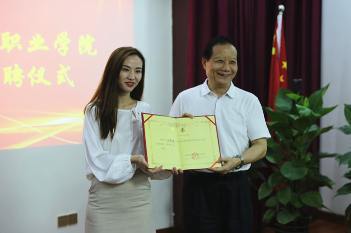 會上,學(xué)院聘請掌中微視文化藝術(shù)院執(zhí)行院長劉曼迪為客座教授,黨委副書記、紀委書記劉興杰為其頒發(fā)了聘書。劉曼迪表示,自己一定會竭盡所能、主動作為,為學(xué)校高質(zhì)量發(fā)展貢獻力量。