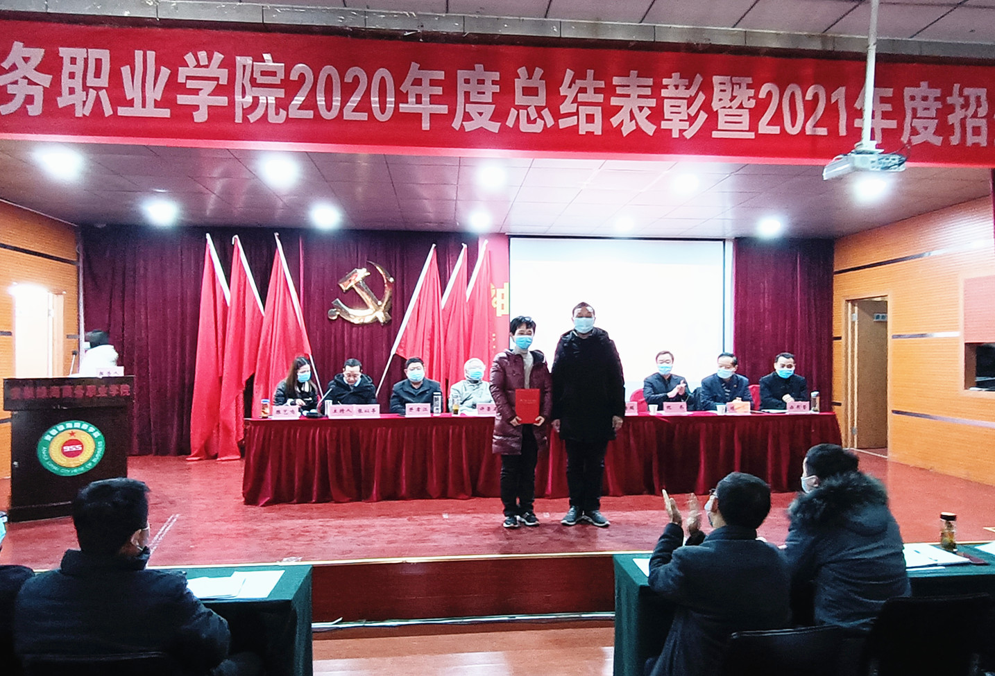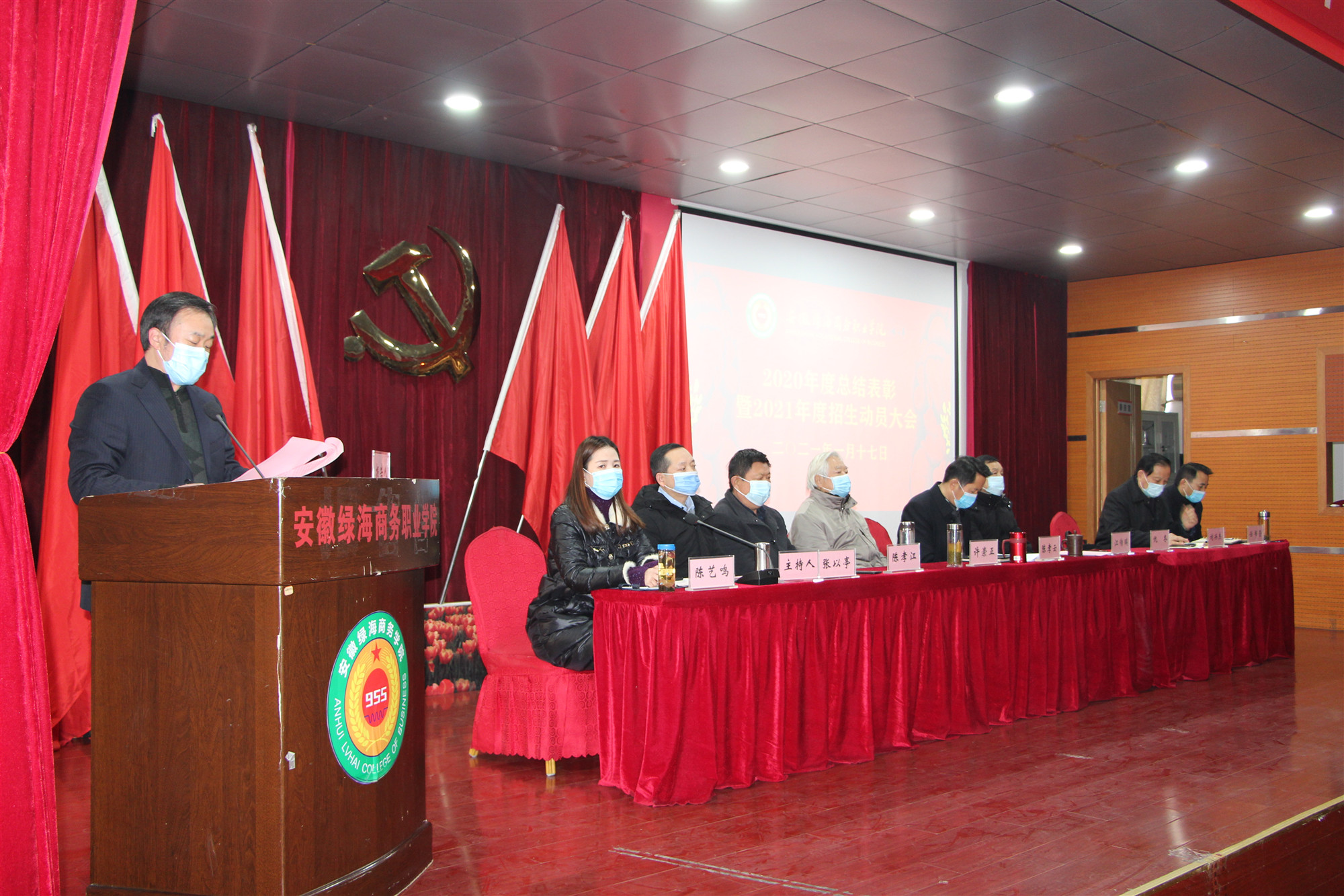 1月17日下午,安徽綠海商務(wù)職業(yè)學(xué)院“2020年度總結(jié)表彰大會”順利召開。為落實(shí)省市疫情防控要求,本次大會以主、分會場聯(lián)動,分會場實(shí)時(shí)轉(zhuǎn)播的形式召開。