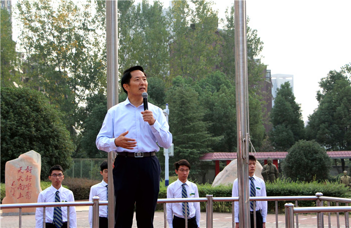升旗儀式上,陳孝云發(fā)表了振奮人心的國旗下講話。他帶領(lǐng)全體師生齊聲高呼:“祖國萬歲!生日快樂!”,向祖國發(fā)出了鏗鏘有力的表白。