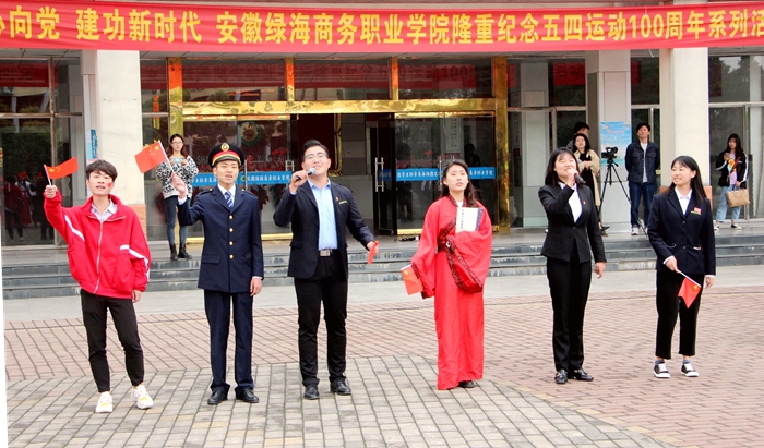 據(jù)悉,《我和我的祖國》MV拍攝是安徽綠海商務(wù)職業(yè)學(xué)院開展以“青春心向黨· 建功新時代”紀念五四運動100周年系列主題活動的重要組成部分,該院在五四前后先后舉辦活動啟動儀式、召開第一次團代會學(xué)代會、五四運動100周年座談會、五四精神主題演講比賽、五四表彰大會等七項主題內(nèi)容。