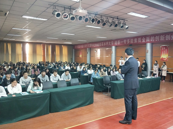 在全體同學起立鼓掌的熱烈場景下,親切的陳老師閃亮登臺,以“從綠海起航 創(chuàng)造人生精彩”為主題,用投身教育事業(yè)二十余年的寶貴經(jīng)驗和精彩的創(chuàng)業(yè)歷程的積累,從態(tài)度、能力、定位、價值四個方面對同學們進行就業(yè)指導,并提出了具體要求。