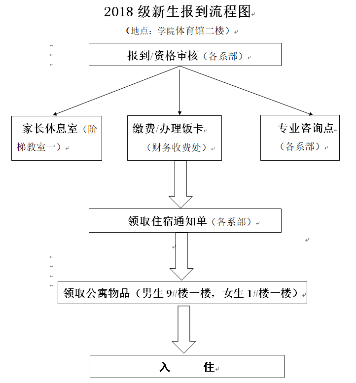1、憑入學(xué)通知書和身份證,到各系部所設(shè)報到處報到,認(rèn)真、準(zhǔn)確地填寫新生登記表,領(lǐng)取《繳費通知單》和《住宿通知單》 ;