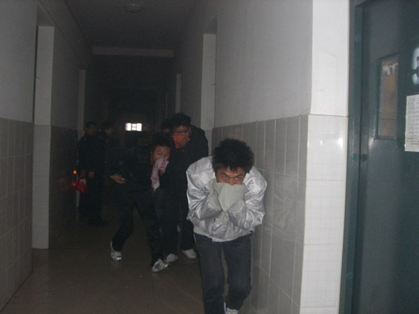 14日中午,保衛(wèi)處在女生1號(hào)樓組織了一場(chǎng)火災(zāi)逃生演習(xí)活動(dòng)。當(dāng)日中午1點(diǎn),組織人員在一樓衛(wèi)生間點(diǎn)燃物品,頓時(shí)彌煙四起,同學(xué)們用濕毛巾捂住口鼻迅速奔出宿舍。此時(shí)組織人員高聲提醒大家不要擁擠,在他們的指揮號(hào)令下,從同學(xué)們疏散引導(dǎo)到事故現(xiàn)場(chǎng)的險(xiǎn)情搶救,從后勤保障到現(xiàn)場(chǎng)保護(hù),都迅速有序地進(jìn)行。
