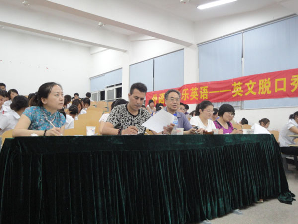 6月2日晚,由外語系舉辦的“快樂英語—英文脫口秀”活動(dòng)在我院階梯教室二隆重舉行。外語系劉月華教授,外教Bob先生,外語系教師錢勇、潘俊梅等出席了本次活動(dòng)。