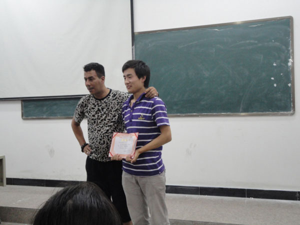 活動(dòng)以一支動(dòng)感的舞蹈《不如跳舞》拉開序幕。本次活動(dòng)共有15名選手參賽,他們分別來自外語系、經(jīng)貿(mào)系、管理系和繼教部。比賽中,選手們鎮(zhèn)定自若地回答老師的每個(gè)問題,同時(shí)老師們也作出了公正的評(píng)判。其中外教Bob先生幽默風(fēng)趣的點(diǎn)評(píng)將全場(chǎng)氣氛推向高潮。經(jīng)過2個(gè)半小時(shí)的激烈比賽,最終外語系商英101班的張武洲同學(xué)摘得桂冠。