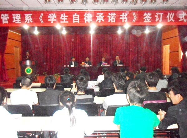 管理系隆重舉行《學(xué)生自律承諾書》簽訂儀式