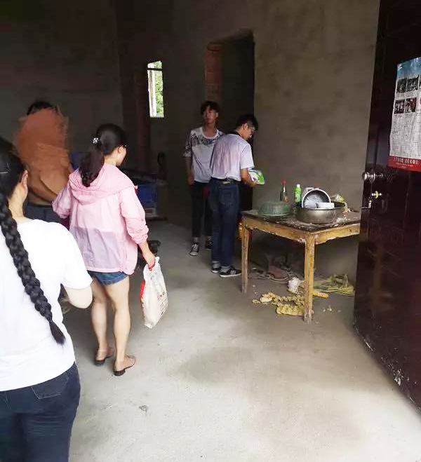 劉阿鳳小朋友家里姐弟4人,母親患有精神疾病,所以4個(gè)孩子也都有遺傳。在去的路上,劉堯小學(xué)的老師介紹說家里第三個(gè)孩子前段時(shí)間患了腦膜炎,家里環(huán)境也比較臟亂,阿鳳的爸爸說第三個(gè)孩子又因?yàn)槟X膜炎發(fā)燒在住院,他回家是看看在家犯病的妻子和第四個(gè)孩子的,我們帶著生活用品和學(xué)習(xí)用品到達(dá)家里的時(shí)候有點(diǎn)無措,除當(dāng)?shù)卣畮兔ιw的房子外家里沒有一件像樣的家具,新蓋的房子上也沒有窗戶。此外,團(tuán)隊(duì)成員通過該村組負(fù)責(zé)人還了解了留守兒童的教育、生存和生活等現(xiàn)狀。