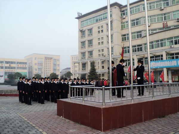 儀式現(xiàn)場,國旗手和國旗方隊身著校服,邁著整齊的步伐走向國旗臺,在響亮的國歌聲中,鮮艷的五星紅旗映著朝霞冉冉升起。市場營銷101班全體同學(xué)鏗鏘有力的學(xué)生宣言向我們昭示著綠海學(xué)子勵志成才的目標(biāo)和決心。