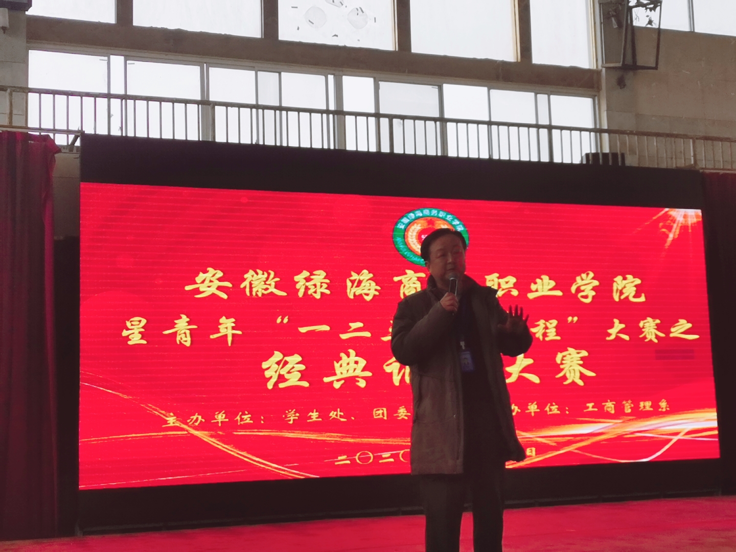 12月9日中午,安徽綠海商務(wù)職業(yè)學(xué)院星青年“一二三四五工程”大賽之校園舞蹈和經(jīng)典誦讀比賽在體育館二樓舉行。學(xué)院黨委書記、星青年總培訓(xùn)師陳孝云,黨委副書記、紀(jì)委書記劉興杰,黨委委員、文化總監(jiān)張以亭,,院長助理陳藝鳴出席觀看比賽。各系部黨團(tuán)書記,輔導(dǎo)員、教師代表,大一、大二全體學(xué)生觀看了比賽。比賽由學(xué)院學(xué)生處、團(tuán)委主辦,工商管理系承辦。